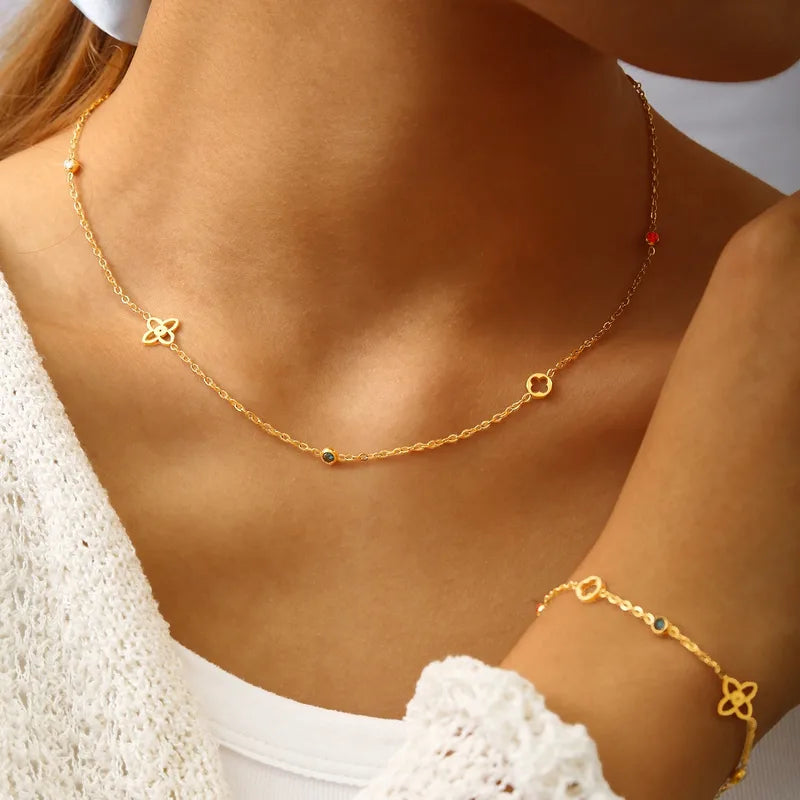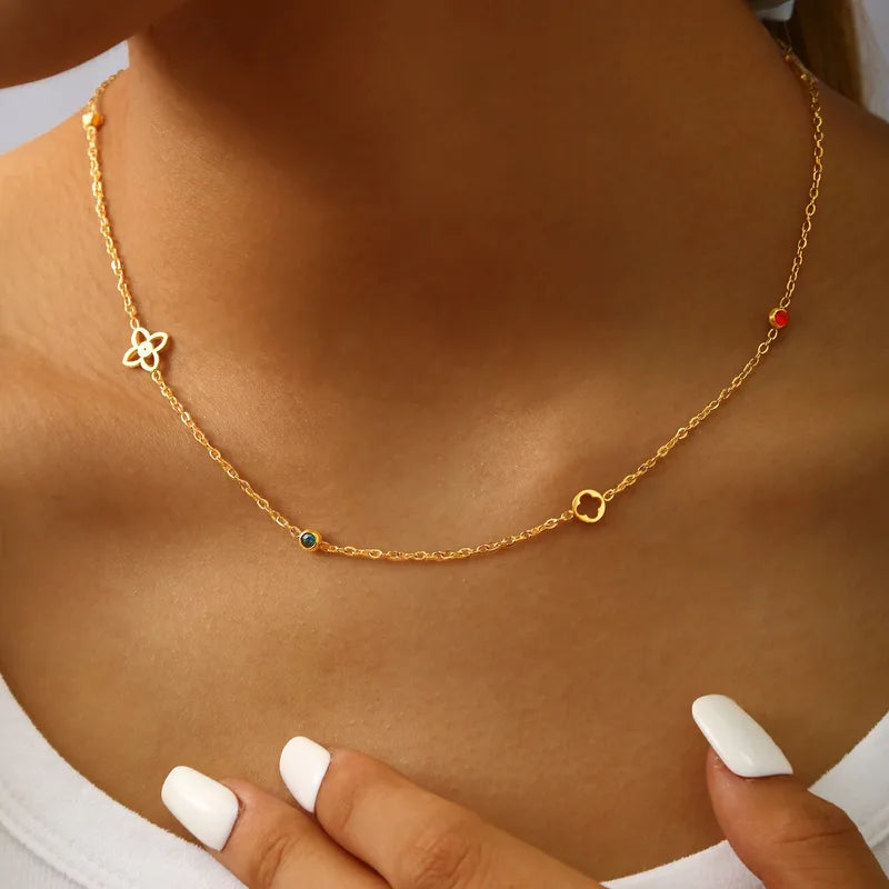 18K gullhúðað blómahálsmen úr ryðfríu stáli