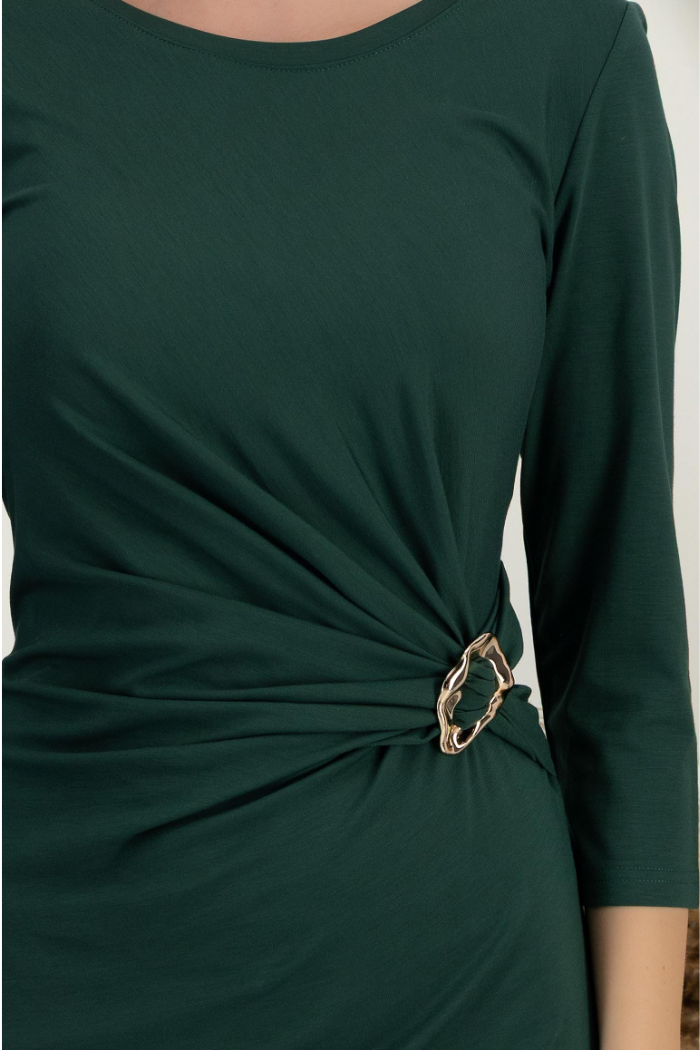 Grænn kjóll með hálsmáli og löngum ermum úr teygjanlegu efni