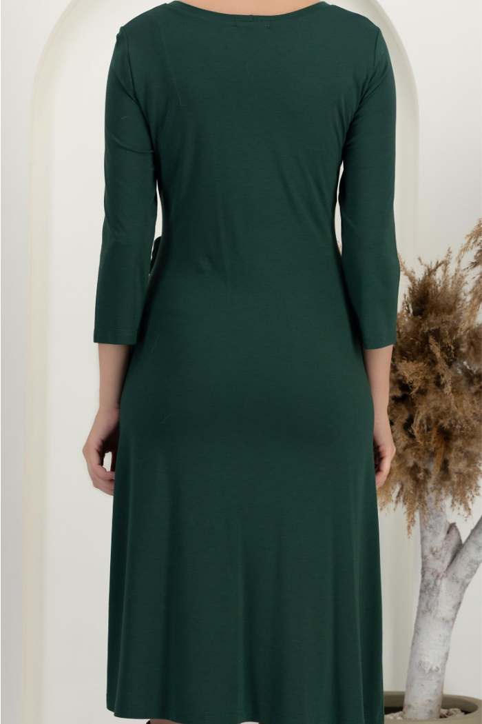 Grænn kjóll með midi-klukku og teygju í mitti að framan og fóðri að innan