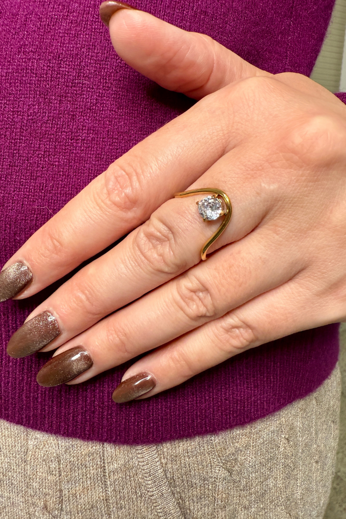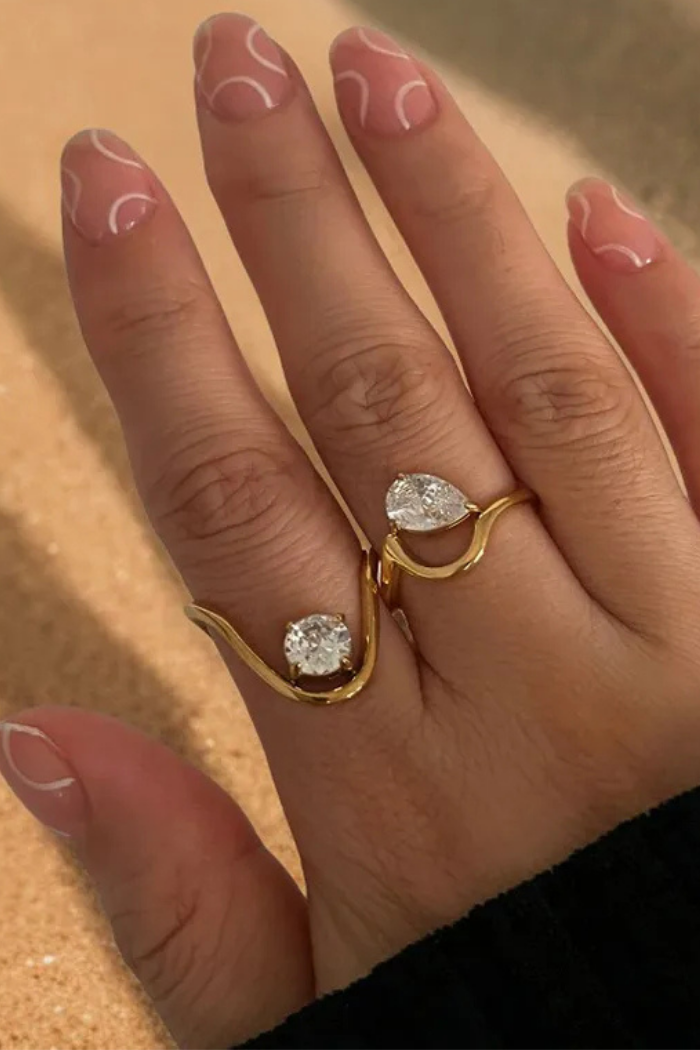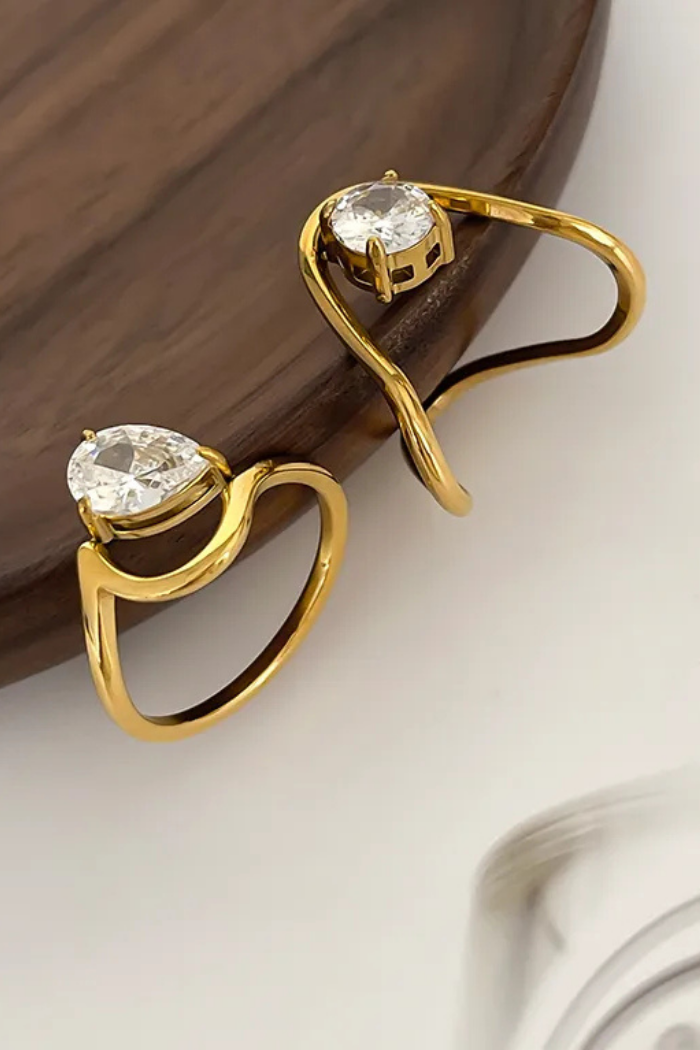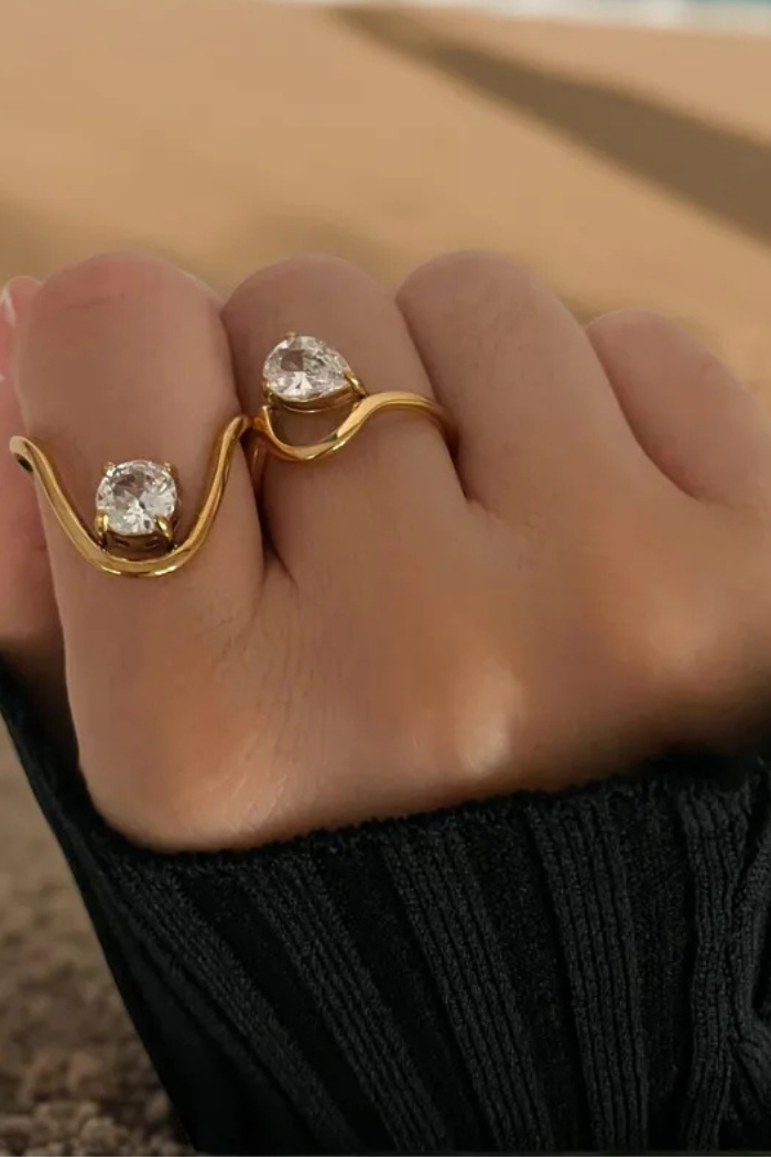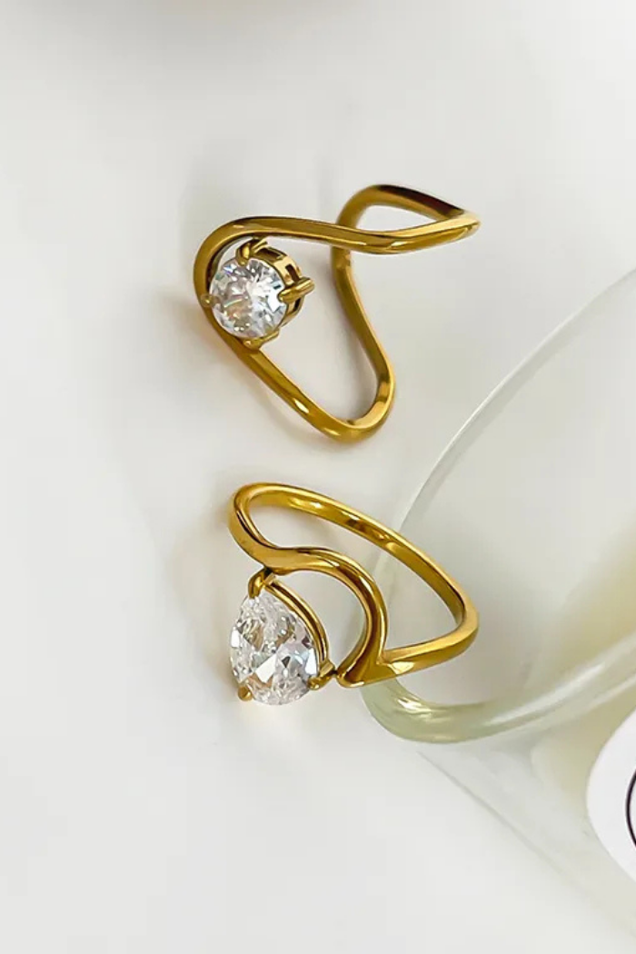 White IG Style Stainless Steel 18K Gold Plated Ring With Zirconia Inserts