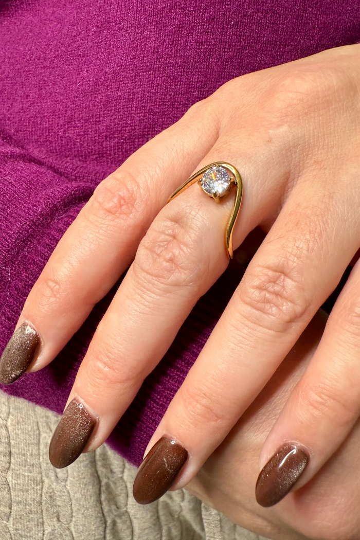Black IG Style Stainless Steel 18K Gold Plated Ring With Zirconia Inserts