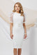 Beige Tapered Dress With Pearl Band At Neck And Voluminous Shoulders