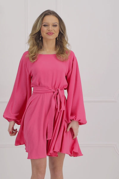 Dress Fuchsia Cloche With Elastic Waist From Elastic Fabric With Puffed Sleeves