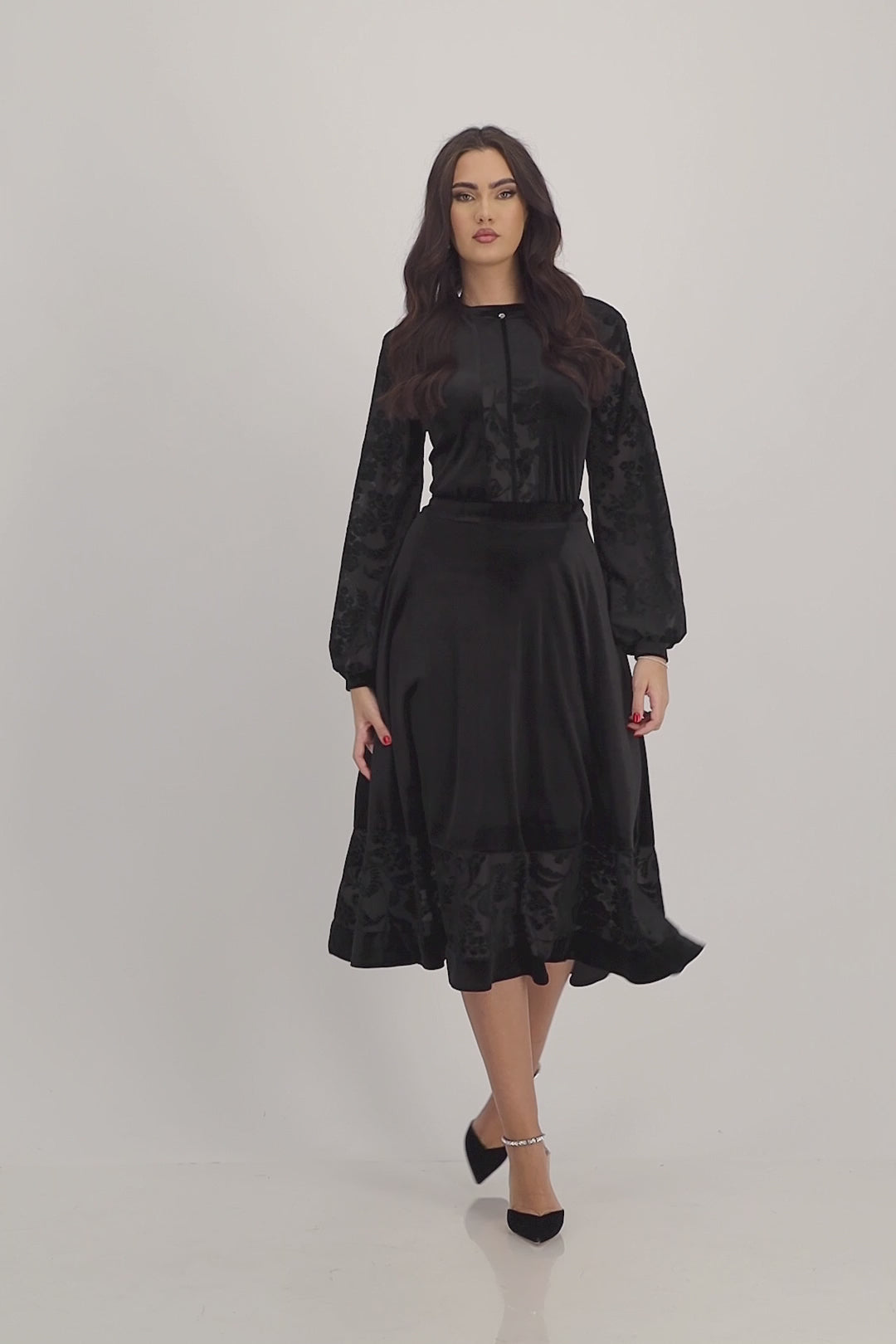 Velvet Women’s Blouse In Black With Fitted Lace Puff Sleeves