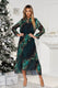 Kjóll úr slæðuefni með grafískum smáatriðum. Kjóll með teygju í mitti og röflum.